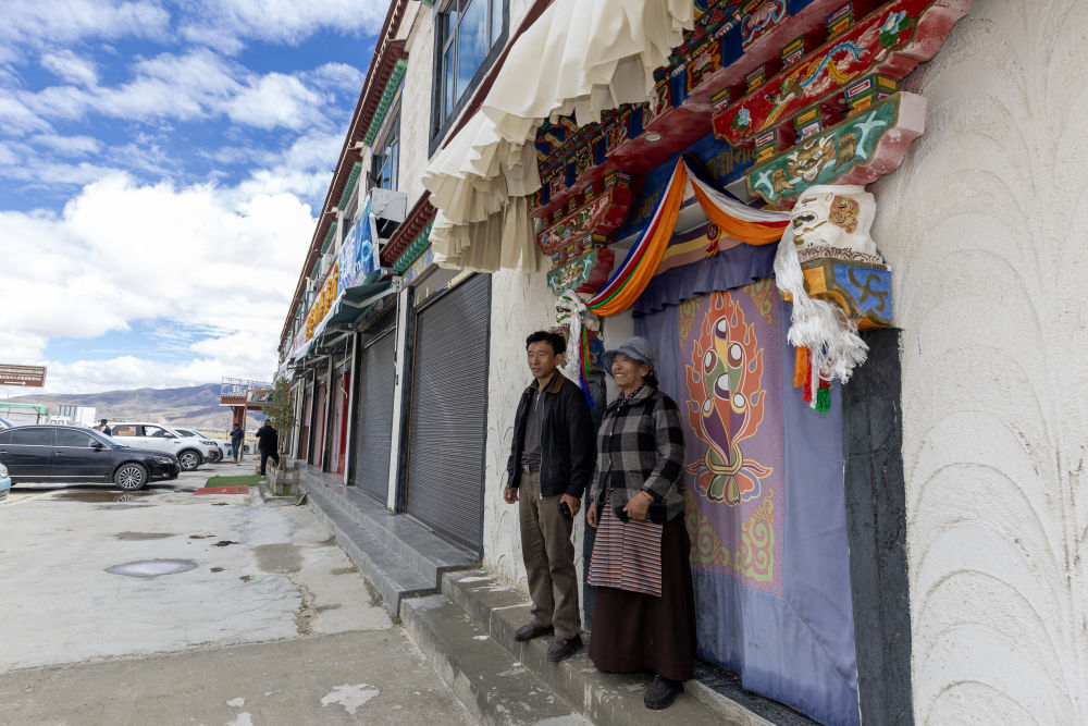 仁青曲珍(右)與兒子在自家門口(9月16日攝)。新華社記者 姜帆 攝