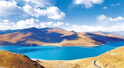 圖為水平如鏡、清澈明麗的羊卓雍錯宛如一塊翠玉落人間,是高原水生態(tài)系統(tǒng)得到良好保護(hù)的典型代表。劉楓 次珍 攝
