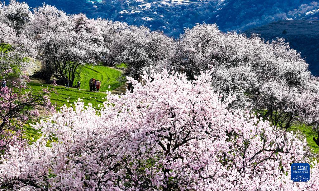俯瞰索松村的桃花林(4月5日攝)。新華社記者 姜帆 攝