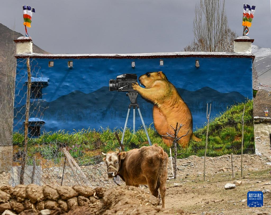 這是4月10日在拉薩市達孜區(qū)章多鄉(xiāng)恰村拍攝的墻畫。新華社記者 晉美多吉 攝