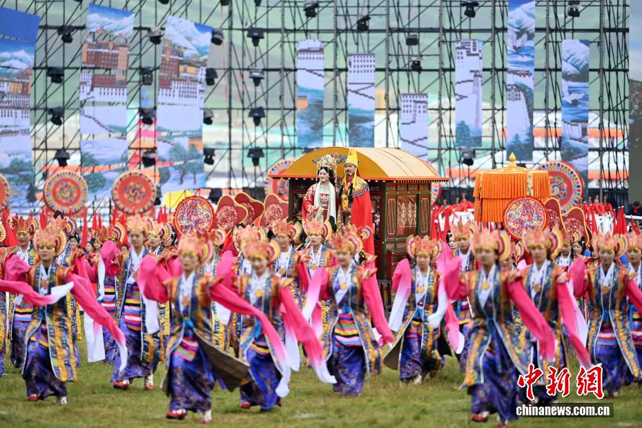 圖為開幕式現(xiàn)場(chǎng)南木特藏戲“文成公主進(jìn)藏”演出。中新社記者 九美旦增 攝