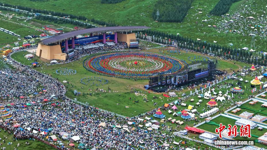 圖為開幕式現(xiàn)場(chǎng)。(無(wú)人機(jī)照片)中新社記者 九美旦增 攝